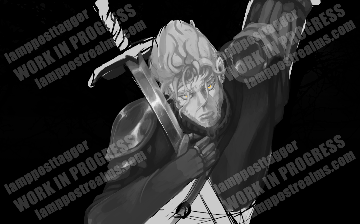 Bereft of his home, friends and family by the war of the great houses, Sir became another character for another pen & paper adventure I participated. Sworn to an oath that granted him divine might, a ominous knight bestowed him title as he vowed to follow a path of vengeance. Even if that meant to forget his true name.