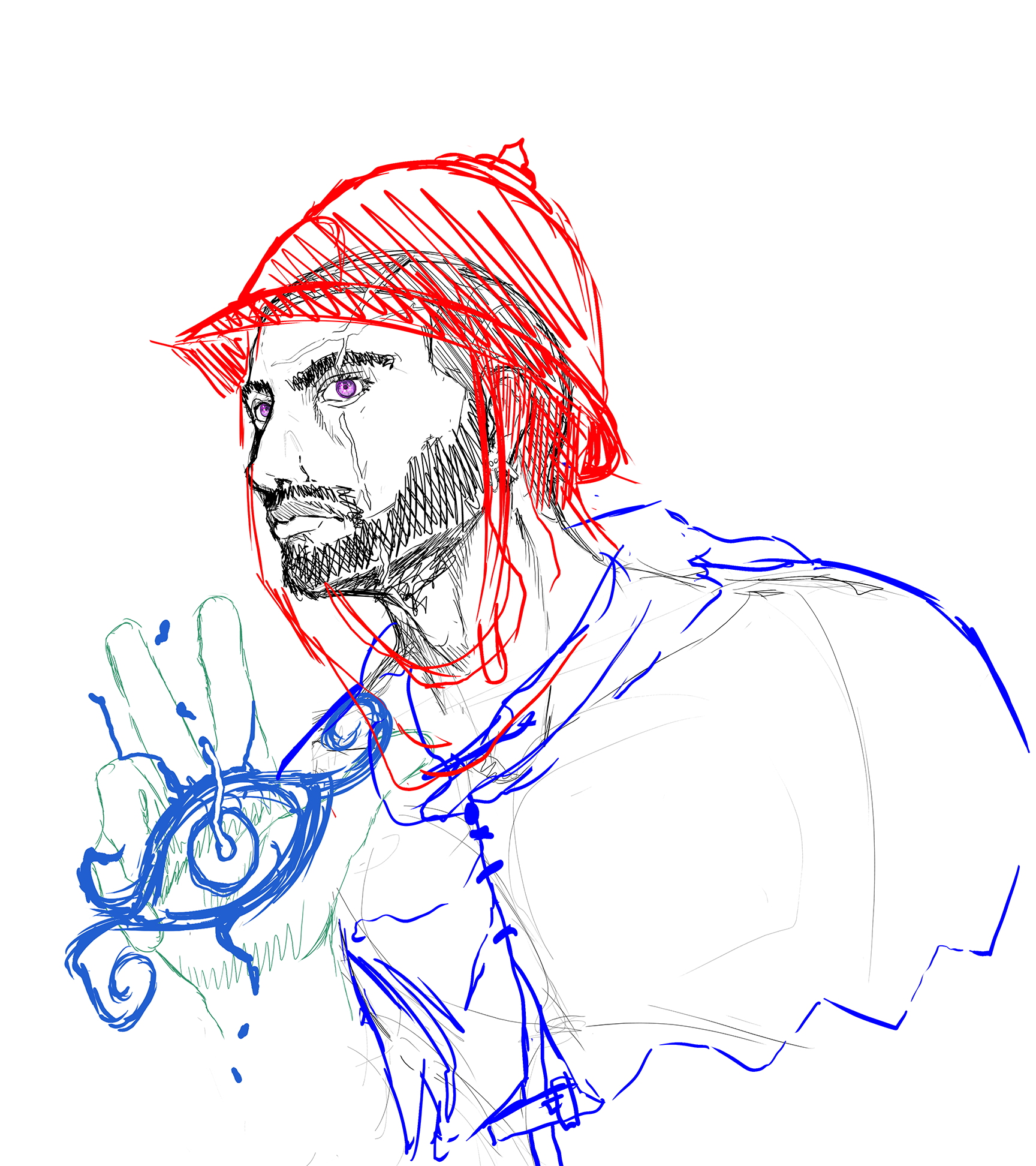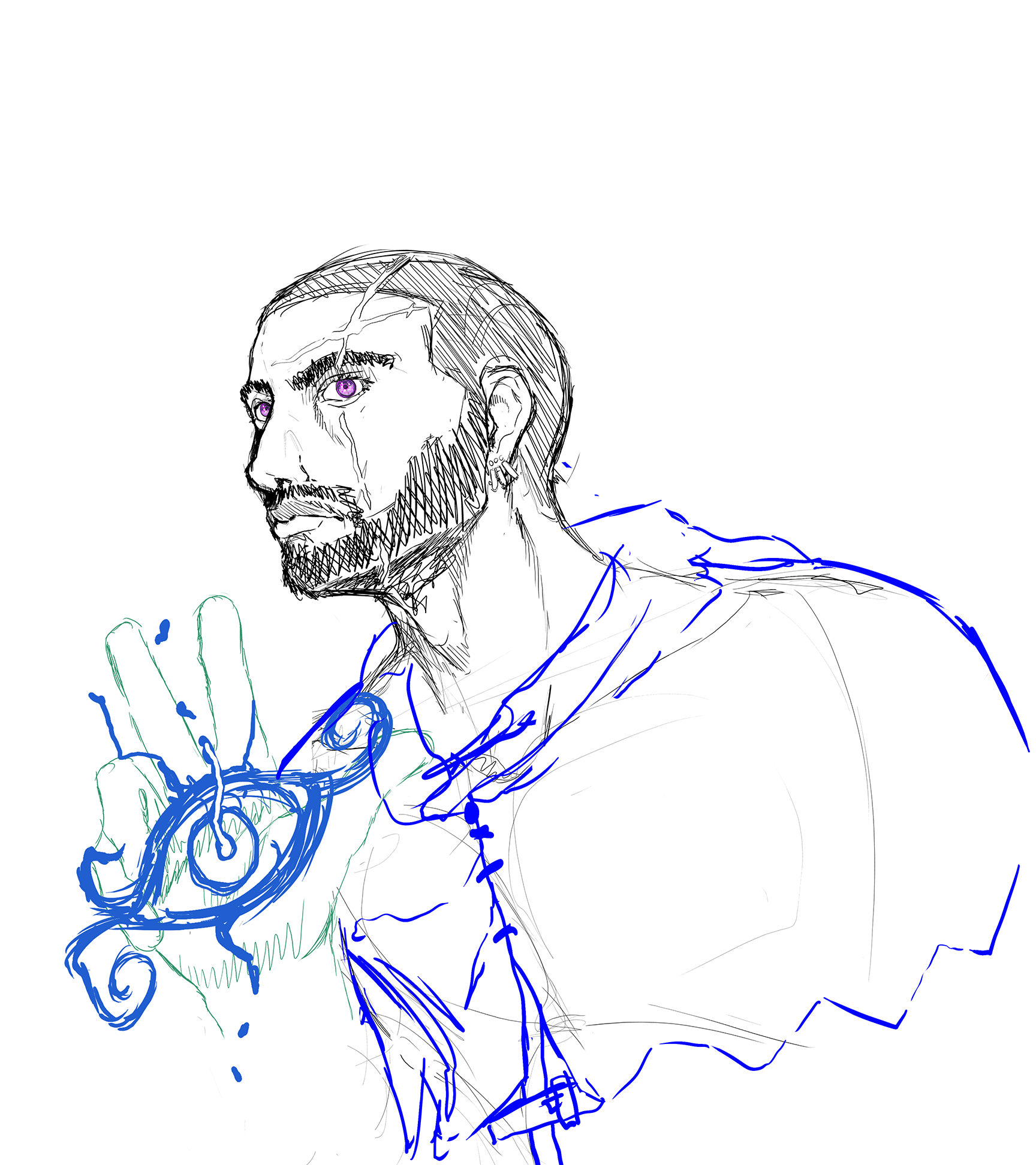More hatch-like drawings of my TTRPG druid character.
