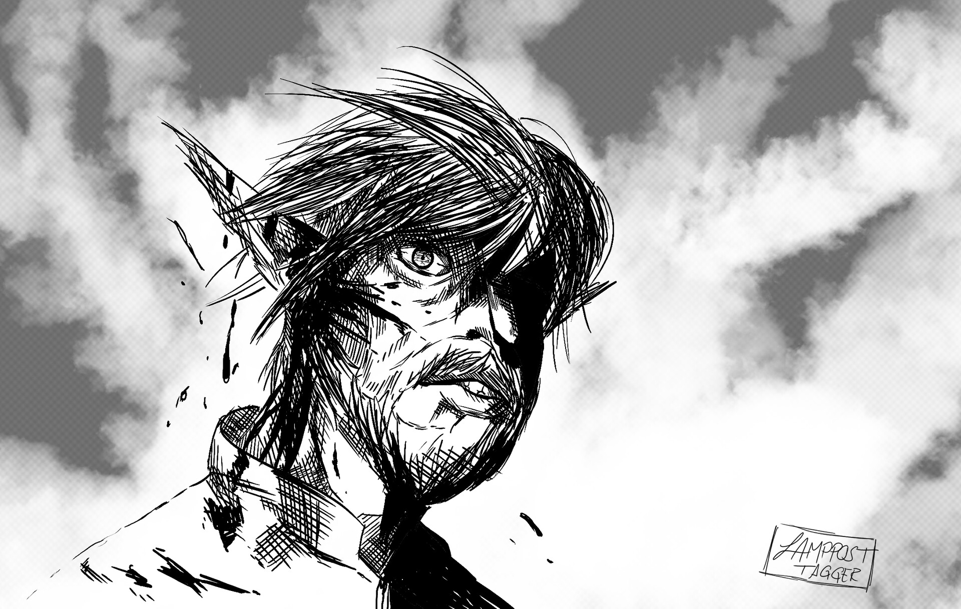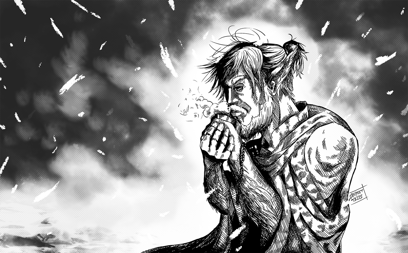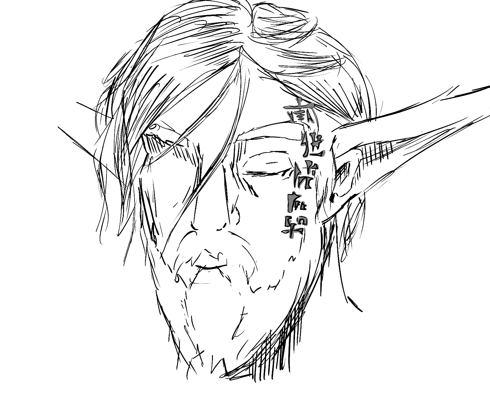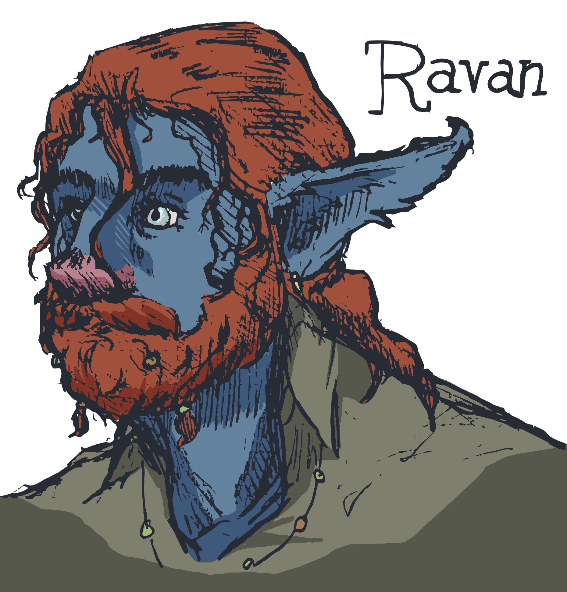 I sketched my D&D character “Ravan”, a Firbolg druid, in a hatching style inspired by Makoto Yukimura’s manga “Vinland Saga”.