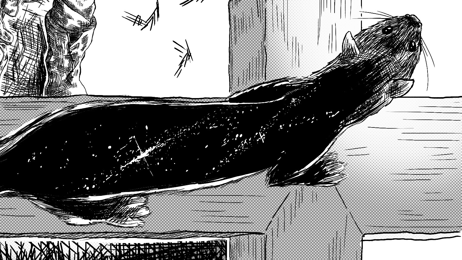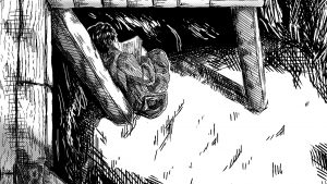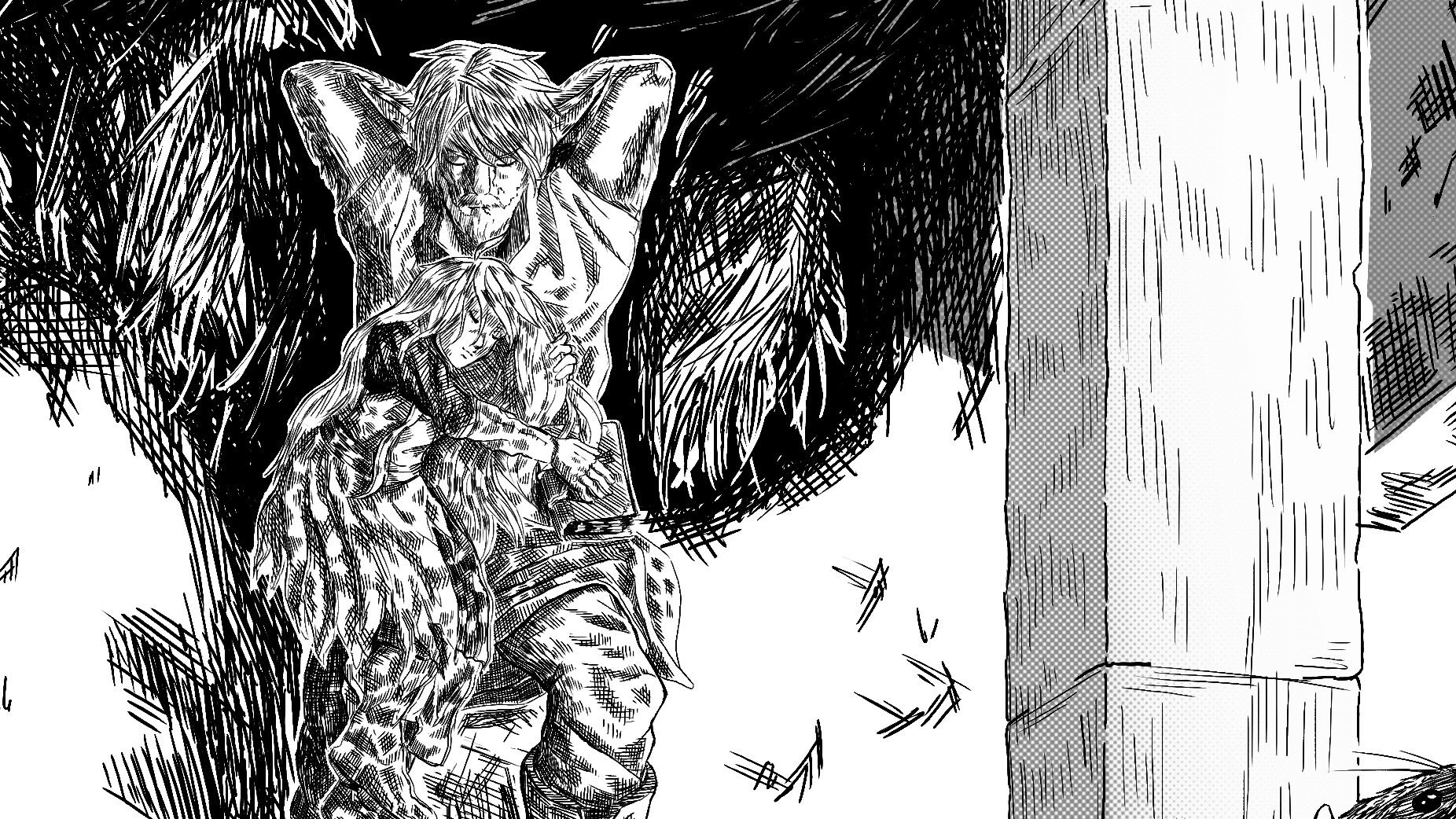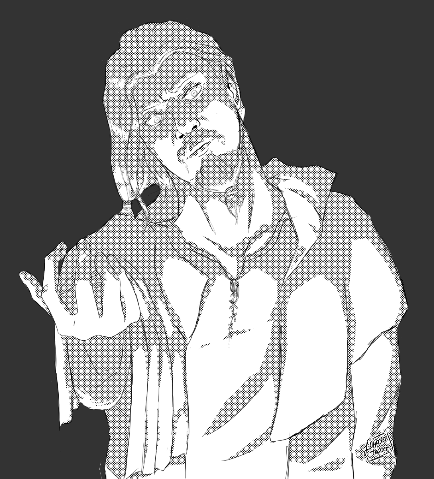 I sketched my D&D character “Ravan”, a Firbolg druid, in a hatching style inspired by Makoto Yukimura’s manga “Vinland Saga”.