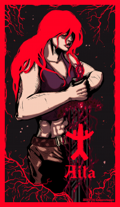 Aila is a Barbarian: Path of the Zealot who has been played by a fellow player in a ttrpg game I ran as a game master.